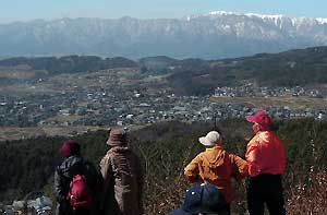 This hiking route features a number of historical sites, which you can view as you bathe in the scent of the woods along the way. The route makes its way up to an observation point at which visitors can enjoy a great view of the Japan Alps and the Matsumoto Basin.