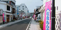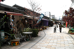 位於中町街的女鳥羽川對岸,是一條非常適合遊玩的步行購物街。